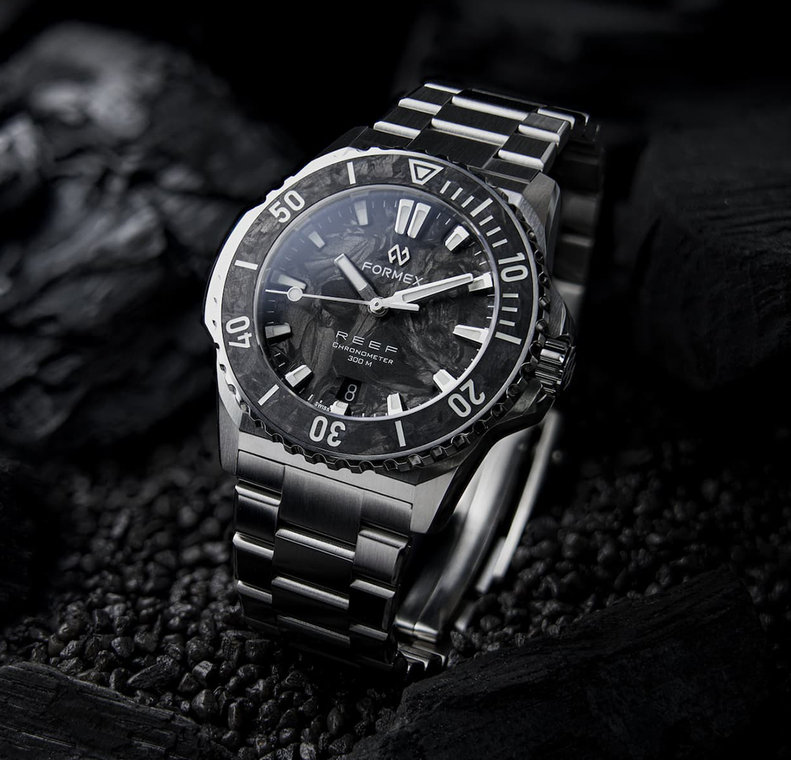 C on una esfera y un bisel intercambiable realizados en carbono forjado, Formex aporta una nueva dimensión estética a su versátil colección de relojes de buceo Reef. Este lanzamiento marca igualmente el debut de la marca en Chronopolis, una reunión exclusiva de relojeros independientes en el corazón de Ginebra, que tendrá lugar del 14 a 18 de abril de 2026, durante la semana relojera. El carbono no es un material nuevo. Es el más antiguo: la base de la vida orgánica y, en su forma procesada, uno de los materiales más avanzados utilizados en la actualidad. Con el Reef 39.5 Forged Carbon, Formex aúna estas dos realidades. No como una promesa de rendimiento, sino como una exploración del material: cómo el carbono forjado introduce una nueva dimensión visual y táctil, que se integra naturalmente dentro del lenguaje de un reloj de buceo moderno. Raphaël Granito, CEO de Formex Watch SA: «El carbono está generalmente asociado al rendimiento –automovilismo, aeronáutica, entornos de fuertes exigencias. En Formex, conocemos muy bien este material y sus aplicaciones, tanto por nuestra herencia en el deporte motor y a través de nuestras colecciones. Con el Reef, el enfoque fue diferente. No se trata de optimizar el peso, sino de explorar las cualidades visuales y estructurales del material y de integrarlo correctamente. Es allí que reside el verdadero desafío. Y cuando uno observa la manera en la cual la luz juega sobre el motivo del carbono forjado, sobre la esfera y el bisel, se comprende porqué esto tiene perfecto sentido aquí».