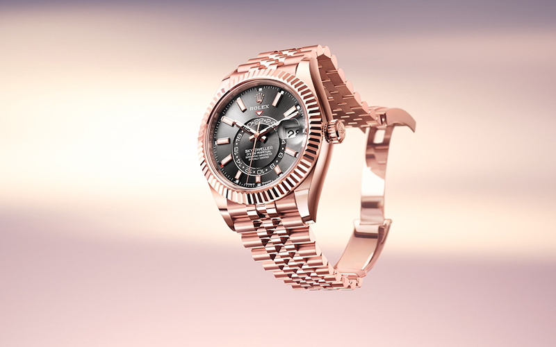 Rolex presentó este año dos nuevas modalidades del Oyster Perpetual Sky-Dweller en oro de 18 quilates, ambas provistas de un brazalete Jubilee.