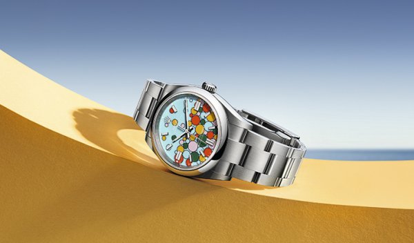 Un crepitar de colores, una estética pop, una emoción en movimiento, así es la nueva esfera lacada con burbujas multicolor del Oyster Perpetual.