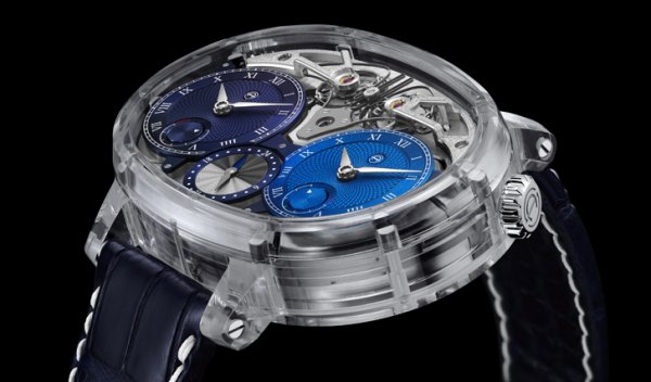 Armin Strom pone a la resonancia como protagonista, presentándola en una caja de cristal de zafiro que permite apreciar los movimientos desde todos los ángulos.