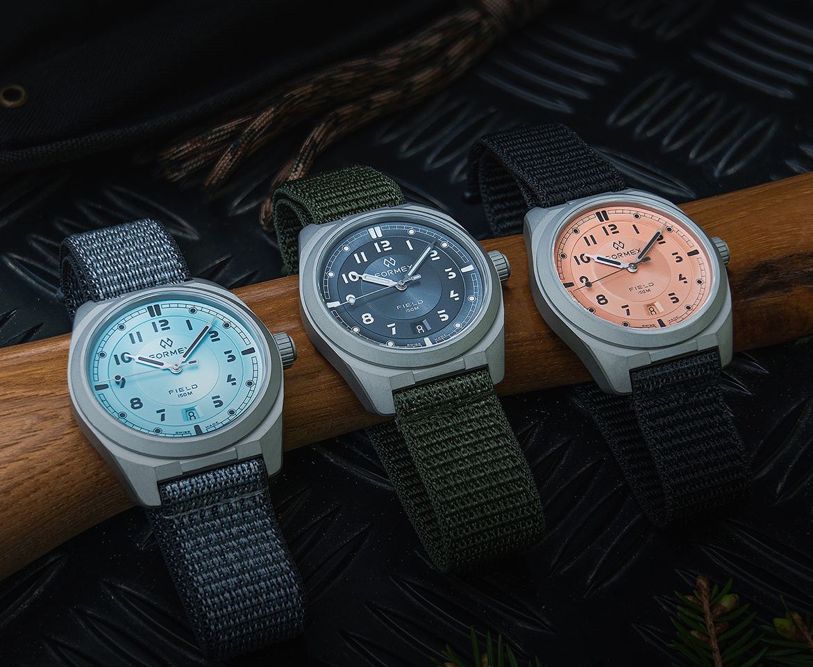 El Formex Field Automatic evoluciona con tres nuevas opciones de esfera robustas y refinadas –Azul Hielo, Salmon Coho, y Gris Basalto– que se combinan con importantes avances tecnológicos.