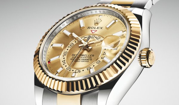 Nueva versión del Oyster Perpetual Sky-Dweller por primera vez en versiones Rolesor amarillo y Rolesor blanco.