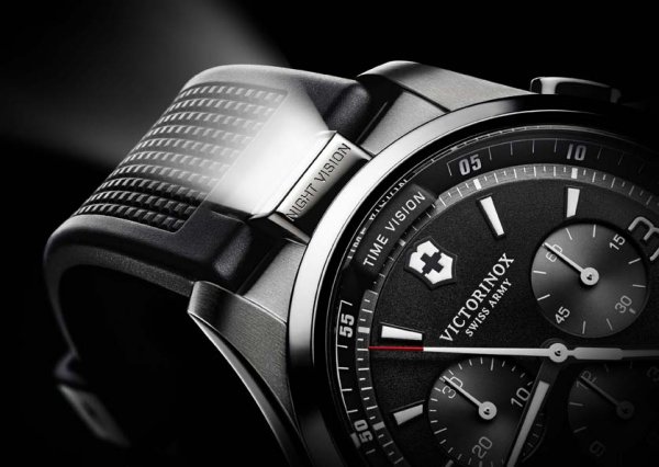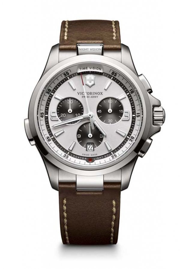 E l Night Vision integra en su modelo de 3 agujas y fecha la complicación relojera más útil: el cronógrafo. Este elegante reloj de acero, que propone un diseño contemporáneo y un perfil depurado, gracias a sus contadores y a los pulsadores, es un instrumento multifuncional útil e indispensable. Sus detalles estéticos agudizan la curiosidad: un punto rojo luminoso situado a las 6 horas, un pulsador entre las 8 horas y las 9 horas y la inscripción «Time Vision» situada a las 12 horas. Indicadores que anuncian la utilidad de sus funciones: un objeto inteligente. Iluminación, señal de emergencia y modo de localización. Todas las prestaciones reunidas en un módulo electrónico exclusivo de la firma Victorinox Swiss Army.
