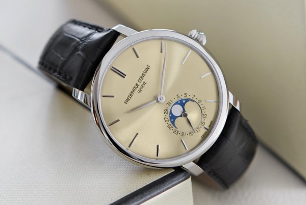 a Colección Manufacture es el orgullo y la satisfacción de la marca. Con más de 20 calibres manufactura en su catálogo, Frédérique Constant puede hacer valer definitivamente su condición de auténtica manufactura relojera, que le permite ofrecer una gama de relojes de alta calidad, bello diseño y un precio de lujo accesible. La distinción suiza se plasma en el ideal de atención a los detalles que impera en la elaboración de los movimientos manufactura, la alta calidad de los acabados y la elegancia de cada ejemplar. Ahora Frédérique Constant incorpora una nueva versión del Slimline Moonphase Manufacture.