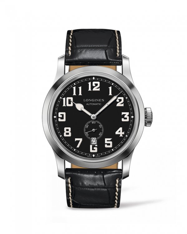 The Longines Heritage Military se inspira en el diseño sobrio y robusto de los relojes militares, a la vez que ilustra perfectamente el saber-hacer relojero del que se beneficia la marca. Su caja satinada realzada por una corona acanalada le confiere un estilo atemporal. Su esfera de color negro mate presenta 12 grandes números árabes pintados revestidos con Super-LumiNova®. Combinados con elegantes agujas tipo «Breguet», así como una minutería tipo ferrocarril, garantizan una lectura perfecta en cualquier circunstancia.
