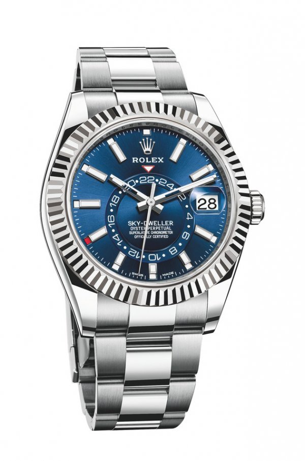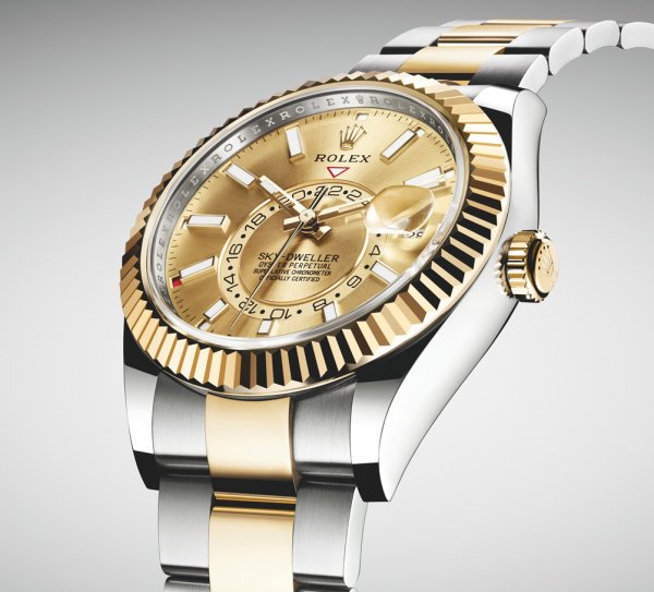 R olex presenta una nueva versión del Oyster Perpetual Sky-Dweller, su reloj clásico para los grandes viajeros, por primera vez en versiones Rolesor amarillo y Rolesor blanco (combinación de acero 904L con oro amarillo o blanco de 18 quilates). Sus esferas están dotadas de índices rectangulares y de agujas alargadas, así como de una visualización Chromalight con luminiscencia de larga duración, con el fin de mejorar más aún su legibilidad.