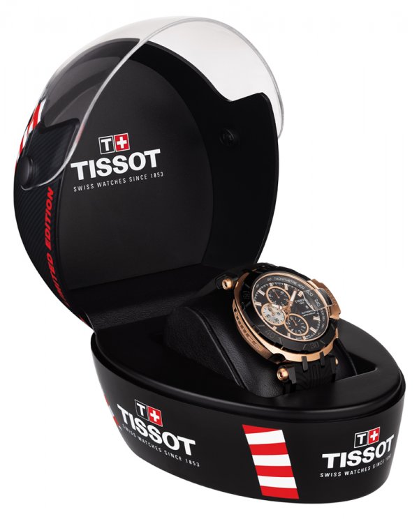 El Tissot T-Race MotoGP® 2017 edición limitada se presenta en un estuche con forma de casco, una auténtica pieza de colección.