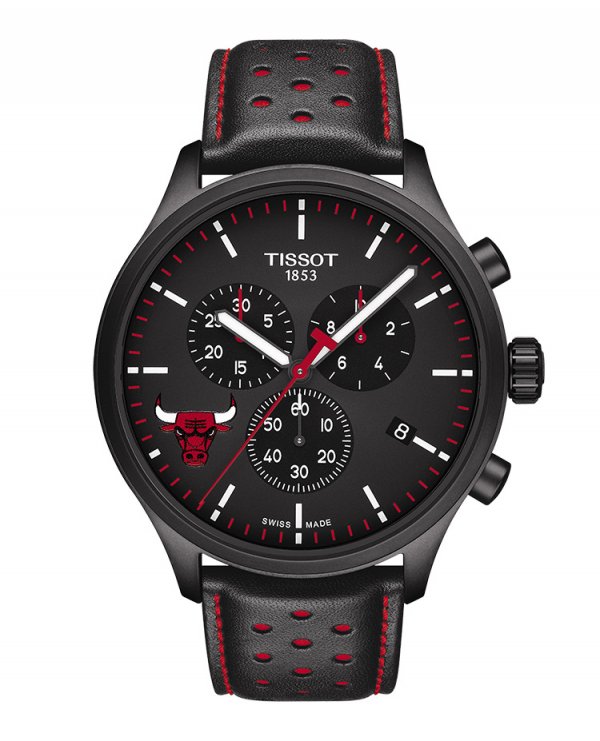 El Tissot Chrono XL no deja ningún detalle al azar. El suave revestimiento de PVD negro de la caja, el pespunteado en color de la correa de cuero y el tratamiento de granallado con arena que aporta un acabado mate consiguen un resultado ultramoderno. Ningún aficionado se resistirá a rendirle un homenaje con tanto estilo a su equipo favorito.