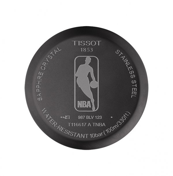 Movimiento cronógrafo de cuarzo. Caja de acero inoxidable 316L. Hermético hasta una presión de 100 metros. Correa de piel con hebilla estándar de acero inoxidable. Los acabados en negro son revestimientos PVD. Logotipo de la NBA grabado en el fondo. Diámetro: 45 mm. Swiss Made.