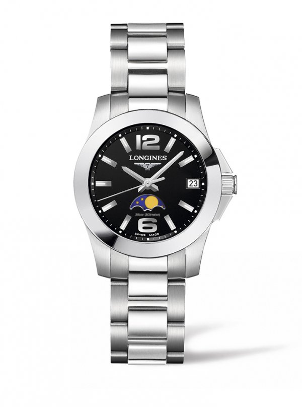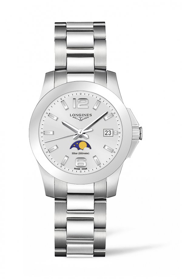 El nombre de la colección Conquest evoca el espíritu de conquista de todos aquellos que se atrevieron a ir más allá para descubrir nuevos horizontes. En este sentido, Longines ha creado los modelos Conquest. Hoy en día, la marca amplía su oferta de modelos femeninos proponiendo un reloj que combina dinamismo y rendimiento y que se distingue por la indicación de las fases lunares.