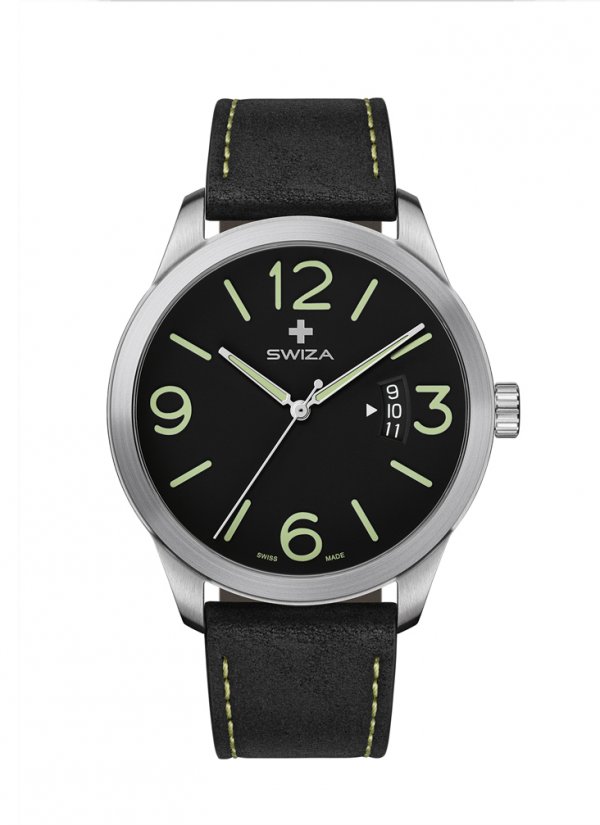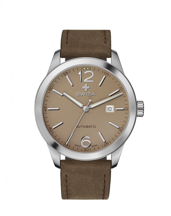 Seguro de si mismo por su estilo y urbano por su diseño, el Swiza Kretos es perfecto para aquellos a los que les fascina la tecnología. Su fondo de caja es transparente revelando el trabajo de precisión interno. Swiza ha mantenido este increíble reloj en el segmento de precio bajo para relojes automáticos, y el modelo es muy funcional y simple de usar. Esferas en negro, azul noche, plateado o beige, presentan índices de fácil lectura y se combinan con una elegante y simple correa de cuero en negro, marrón, azul o gris.