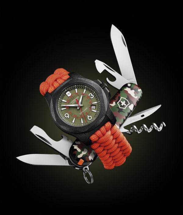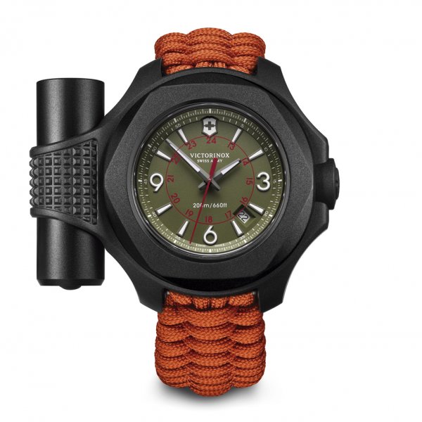 Disponible en versión contraste o camuflaje y totalmente personalizable, el reloj se lanza en una edición limitada de 1.000 ejemplares, con una segunda correa de caucho caqui, y en otra edición limitada de 200 ejemplares, exclusiva para las tiendas Victorinox, con correa de caucho naranja. Su bumper protege al reloj en todo tipo de aventuras, mientras que la linterna de bolsillo integrada permite al usuario iluminarse en la oscuridad y, en modo estroboscópico, señalar su posición en caso de peligro.