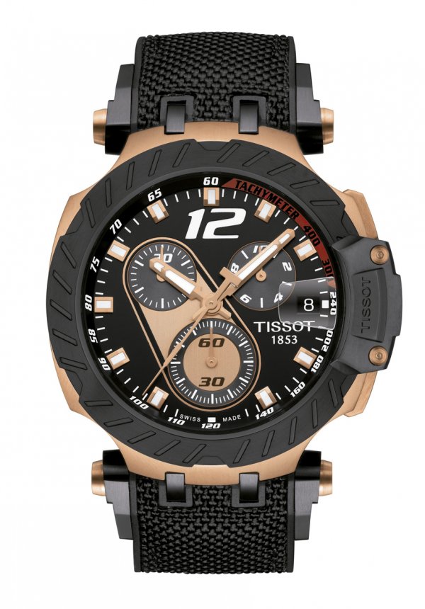 Lo deportivo puede ser elegante, como lo demuestran los lujosos detalles del Tissot T-Race MotoGP TM Automático 2019. La elegante esfera incluye contadores e índices de mayor tamaño de color oro rosa refinado, complementada por una caja de PVD en oro rosa de aspecto moderno con un bisel revestido con PVD negro.