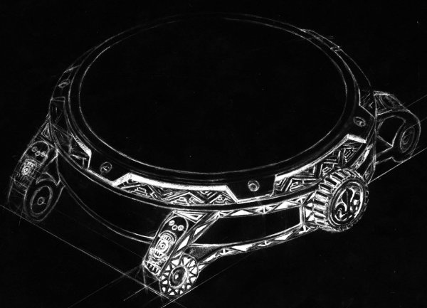O nly Mexico es una pieza única en homenaje a las raíces de la cultura mexicana. Los Ateliers Louis Moinet recabaron minuciosamente información y materiales entre los más representativos de México para fusionarlos en este diseño original extraordinario. Incluye en especial el material más antiguo que haya conocido el mundo: el meteorito Allende, hallado en el poblado del mismo nombre en el Estado de Chihuahua. Only Mexico está provisto del torbellino mecánico Louis Moinet, que recibió la Medalla de Oro en el último Concurso Internacional de Cronometría y oscila a 21'600 vibraciones por hora. La célebre caja NEO de Louis Moinet, tallada en oro rosa 5N, acentúa la fuerza de carácter del diseño. Su incomparable silueta es producto de la combinación de un conjunto de tecnologías inéditas. Todo está pensado en torno a dos puentes horizontales que cruzan la pieza, en cuyas asas se insertan los dos extremos de la pulsera.