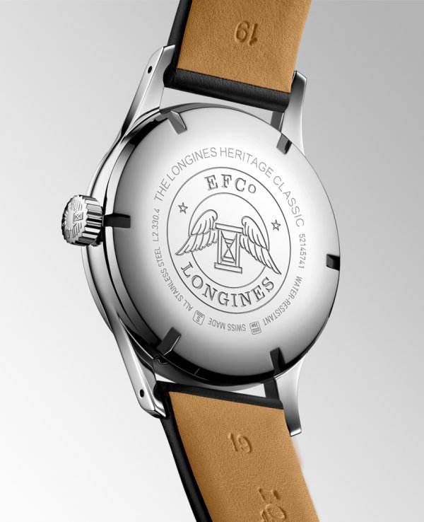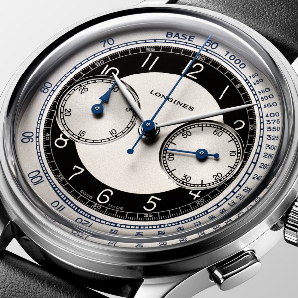 No nos cuesta imaginarlos en las muñecas de los bailarines en los clubs de jazz. De hecho, los coleccionistas lo han bautizado «Tuxedo», ya que el contraste de blanco y negro de la esfera recuerda a los trajes que se llevaban en las fiestas elegantes de la época. En aras de respetar el espíritu de los modelos originales, Longines ha optado en este caso por no incluir la mención «Automatic» en sus esferas. Con la idea siempre en mente de crear piezas tan fieles a los relojes históricos como resulte posible. Tampoco cuenta con fecha en sus modelos contemporáneos, que se presentan sobre correas de cuero negro semimate que respetan al detalle el espíritu de la época.