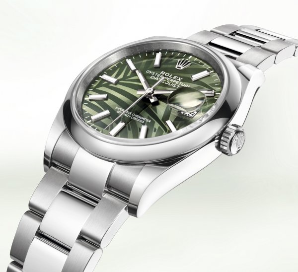 R olex presenta cuatro nuevas modalidades de su Oyster Perpetual Datejust 36, con esferas decoradas con motivos inéditos «palmeras» o «acanalado» de una estética única. El motivo «palmeras» evoca los bosques tropicales, exuberantes y coloridos; el motivo «acanalado» emula las estrías que presentan algunos biseles de Rolex, un auténtico rasgo estético de la marca.
