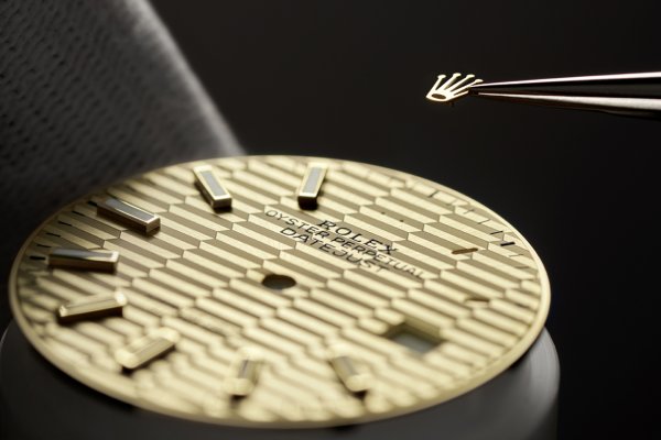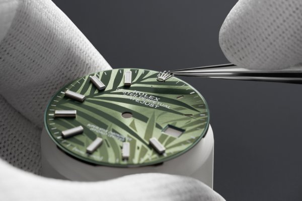 El motivo «palmeras» está presente en tres de ellas: lo encontramos en la esfera verde oliva de la primera, elaborada en acero Oystersteel y equipada con un brazalete Oyster; en la esfera dorada de la segunda, realizada en versión Rolesor amarillo (combinación de acero Oystersteel y oro amarillo de 18 quilates) y también provista de un brazalete Oyster; y en la esfera plateada de la tercera, fabricada en versión Rolesor Everose (combinación de acero Oystersteel y oro Everose de 18 quilates) y dotada de un brazalete Jubilee. El motivo «acanalado», por su parte, decora la esfera dorada de la última modalidad, en versión Rolesor amarillo y que luce, asimismo, un brazalete Jubilee.