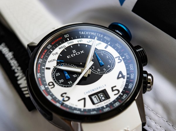 Limitado a 2.000 piezas, el Chronorally presenta una esfera blanca o negra con detalles en rojo y azul o una esfera azul o negra con detalles en rojo y blanco. Las esferas se asemejan a los controles del tablero de un auto de carrera y permiten funciones como taquímetro, cronógrafo a 1/10, día retrógrado, y una gran ventanilla de la fecha para una máxima visibilidad. Con las agujas e índices cubiertos con Superluminova X1, el Chronorally asegura una perfecta legibilidad cualesquiera sean las condiciones. Cada uno de los relojes en edición limitada viene con una segunda correa suave de caucho presentando el famoso diseño de neumático de Chronorally todo en una caja de reloj especial dedicada.