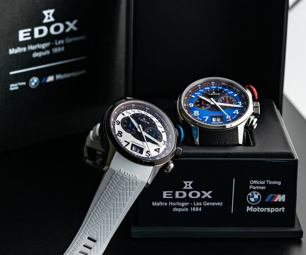 E n la actualidad no existe ningún otro reloj Swiss Made premium que tenga una conexión tan estrecha con el deporte motor como el Chronorally de Edox. Los relojes de esta serie de renombre mundial fueron desarrollados para soportar incluso las condiciones más exigentes. La colección ilustra perfectamente los aspectos individuales de las carreras y ha establecido nuevos estándares una y otra vez por más de una década. Presenta una caja de titanio, una esfera de elaborado diseño, el característico botón pulsador de segundos extra grande, y la tapa del fondo única con el diseño de una llanta de neumático y la suave correa de caucho con perfil de neumático. Los dos nuevos modelos edición limitada del Edox Chronorally han sido diseñados inspirados por el patrocinio con BMW M Motorsport.