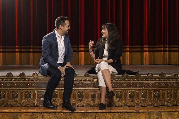 El mentor de la categoría abierta Lin-Manuel Miranda con su discípula, la argentina Agustina San Martín en el United Palace Theatre en New York. © Rolex/Arnaud Montagard