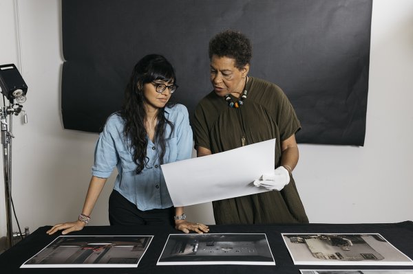 Camila Rodríguez Triana de la categoría Artes Visuales, charlando con su mentora Carrie Mae Weems en Syracuse, New York. © Rolex/Arnaud Montagard