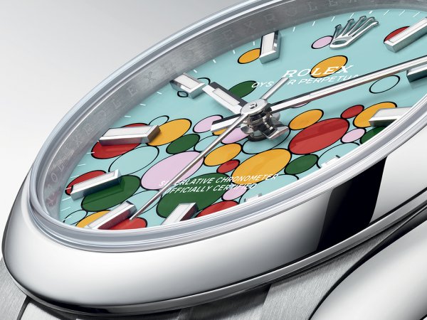 R olex estrenó recientemente un nuevo motivo decorativo para sus esferas de la gama Oyster Perpetual, reconocida por su estilo minimalista y universal. Bautizado como «Celebration», este motivo inédito se propone para el Oyster Perpetual 31, el Oyster Perpetual 36 y el Oyster Perpetual 41. Compuesto por burbujas perfiladas en negro de diferentes tamaños, retoma los luminosos colores de las esferas lacadas presentadas en 2020: rosa candy, azul turquesa, amarillo, rojo coral y verde. Como todos los relojes Rolex, estos modelos Oyster Perpetual cuentan con la certificación de Cronómetro Superlativo, que garantiza su excelente rendimiento en la muñeca.