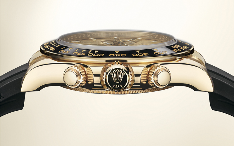 l Rolex Oyster Perpetual Cosmograph Daytona se ha consolidado mucho más allá de los circuitos automovilísticos por su estética emblemática y su desempeño técnico. Este año, para conmemorar sus 60 años, Rolex presentó una nueva generación, con una gama completamente renovada. La caja y la esfera de este cronógrafo, que destaca desde su lanzamiento por su diseño único, se han reformulado y ciertos detalles han sido sutilmente renovados. Concretamente, la esfera presenta un nuevo equilibrio gráfico y, gracias a un armonioso juego de colores, el contraste entre el fondo y los contadores –o sus anillos– se ve acentuado. La caja Oyster se ha rediseñado y sus formas se resaltan mediante reflejos luminosos sobre las asas y los flancos de la carrura. En las modalidades dotadas de bisel Cerachrom, éste está rodeado por un fino ribete fabricado en el mismo material que la carrura.