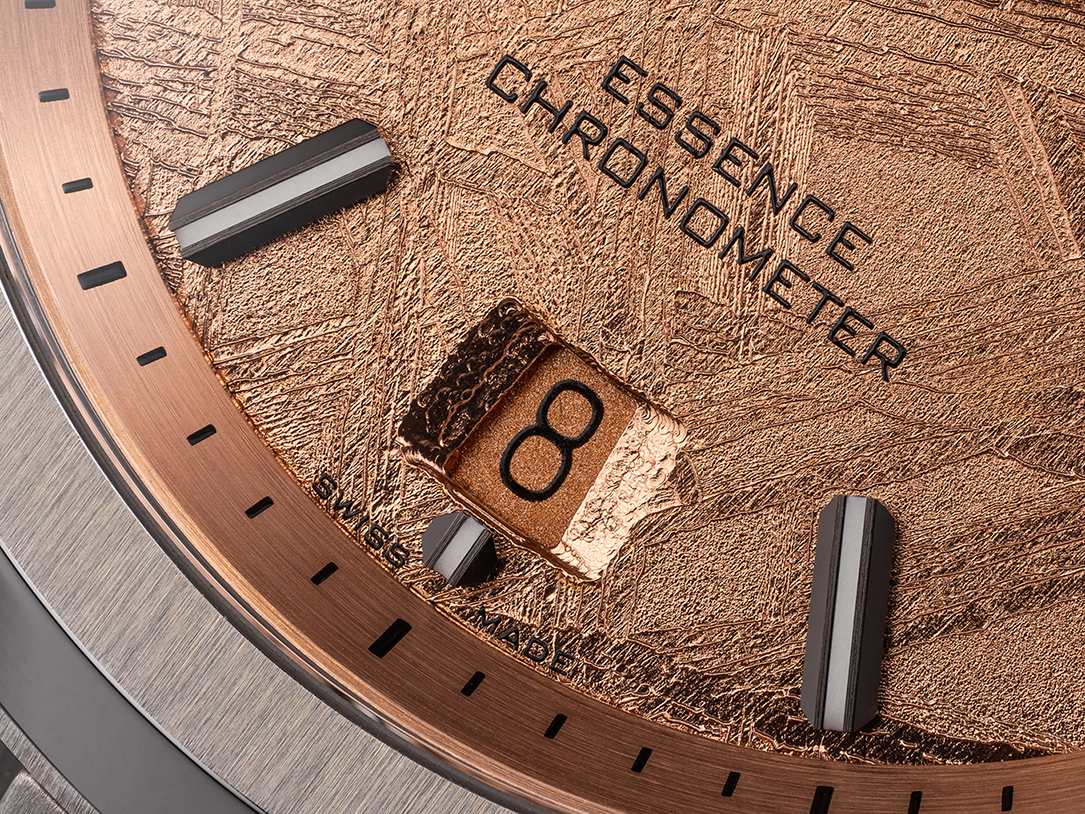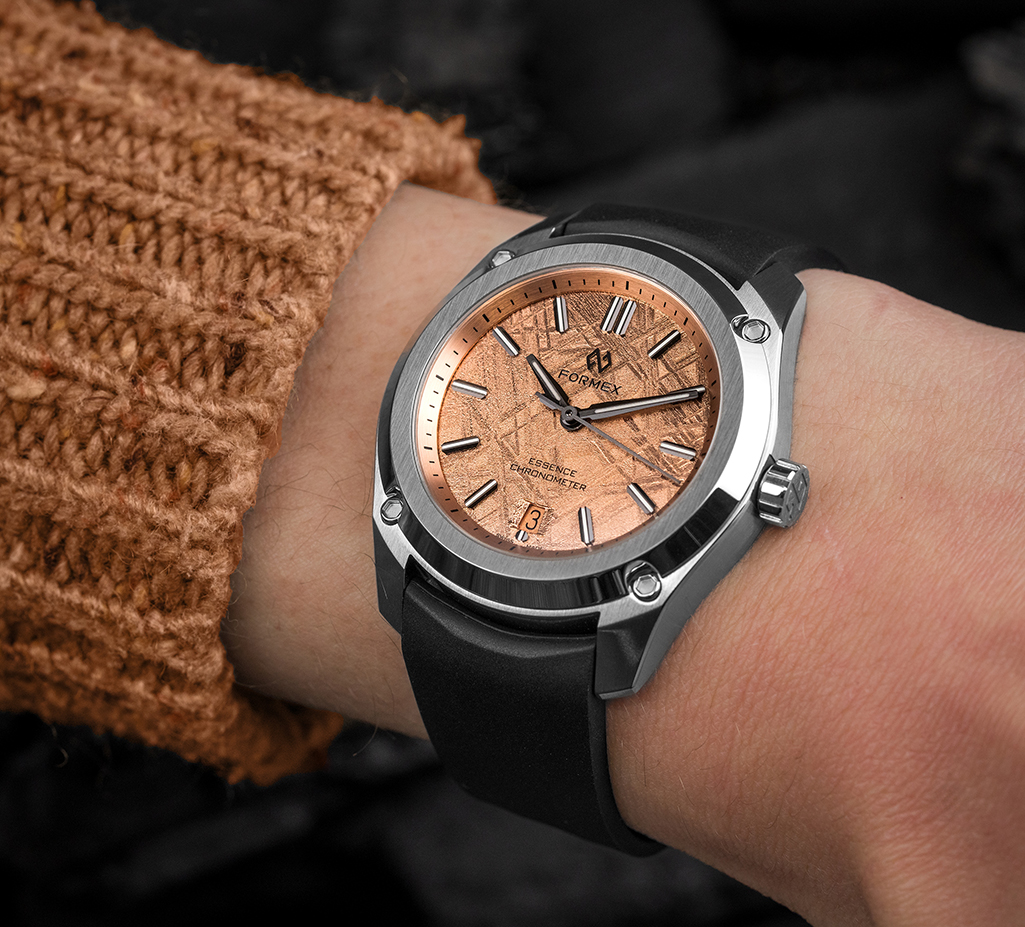 F ormex Swiss Made Watches presenta los nuevos modelos Essence Space Gold Automatic. La aplicación de oro rosa de 18 quilates en una esfera real de meteorito es un desarrollo innovador de la fábrica propia de esferas de la empresa familiar. Si bien colorear meteoritos no es un nuevo concepto, Formex diverge del enfoque convencional de cobertura PVD. En cambio, un innovador proceso hace uso del rico contenido de hierro del meteorito para facilitar la auténtica deposición de oro a través de galvanoplastía. ¿El resultado? ¡Nada menos que espectacular!. La infusión de metales preciosos acentúa el fascinante patrón Widmanstätten inherente al meteorito Muonionalusta, dotando a cada esfera de una cautivante profundidad y un innegable toque de elegancia. Como las texturas son orgánicas y no pueden ser reproducidas artificialmente, cada esfera se convierte en un trabajo de arte único. Encapsulado en la caja del reloj más vendido de la marca, el Essence 39 mm, el «Space Gold» está accionado por un movimiento automático suizo altamente preciso certificado por el COSC y viene con características que incrementan la comodidad mientras el reloj es llevado en la muñeca. Los precios comienzan en $1,890.00. Las primeras 100 unidades están numeradas y disponibles para pre-order, con entrega prevista para principios de Julio de 2024.