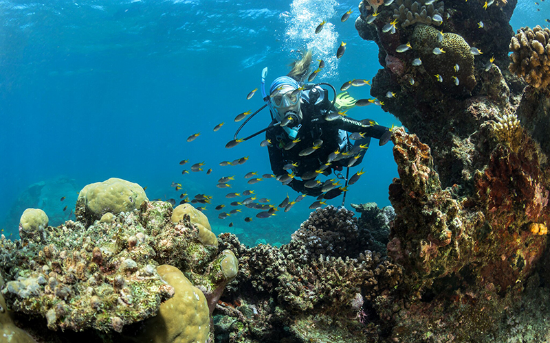 La Laureada de la edición 2019 de los Premios Rolex a la Iniciativa y bióloga marina británica Emma Camp trabaja para descubrir soluciones para proteger nuestros arrecifes de coral. Camp y su equipo han trasplantado más de 100000 corales a 124 guarderías en más de 30 áreas de la Gran Barrera de Coral. © Rolex/Franck Gazzola