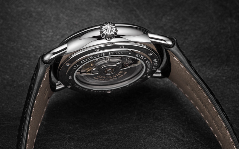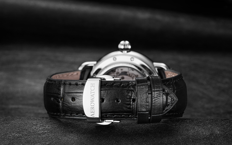 Protegido por un cristal de zafiro combado, el reloj parece flotar en perfecto equilibrio. Para hacer más perfecta esta estética armoniosa, la caja de 42 mm de diámetro en acero inoxidable está delicadamente redondeada. Gracias a su apariencia elegante y discreta, este sublime Régulateur automático en edición limitada conquistará igualmente al mundo femenino. El Régulateur automático en edición limitada a 100 ejemplares está disponible exclusivamente en los puntos de venta Aerowatch.