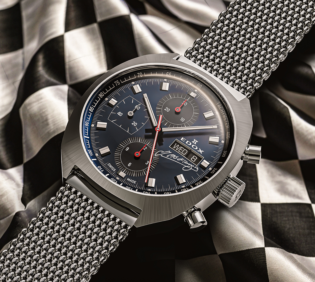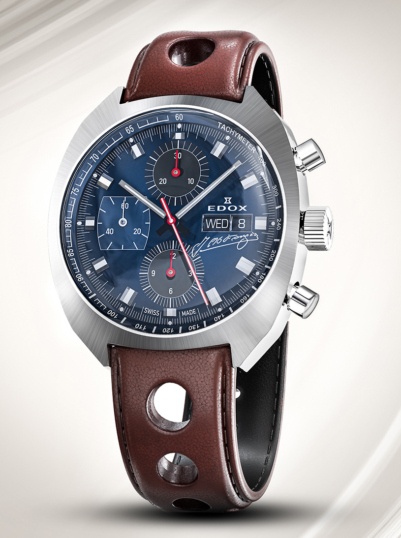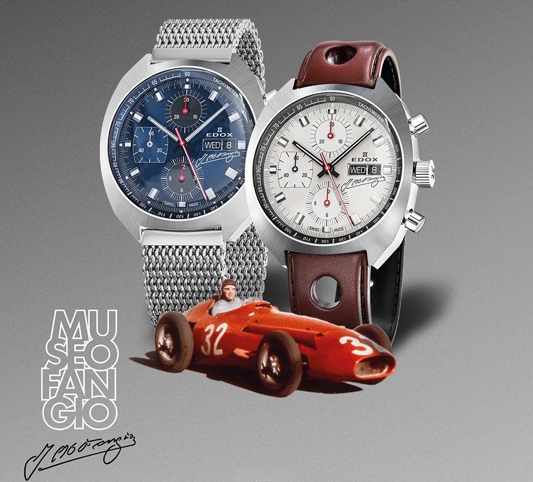 E dox rinde homenaje a una leyenda eterna del automovilismo como lo es Juan Manuel Fangio. En el mundo del automovilismo, pocos nombres inspiran el mismo respeto y reverencia que Fangio. No solo ganó carreras, sino que estableció el estándar de lo que significa ser un campeón. Para honrar este extraordinario legado del Quíntuple Campeón Mundial, Edox se asoció con el prestigioso Museo Fangio para crear dos ediciones limitadas de su Sportsman Chronograph, como tributo a los 115 años del perdurable legado de Fangio. Elaborado en dos versiones exclusivas, cada una limitada a 115 piezas, este reloj rinde homenaje a un hombre que se convirtió en leyenda y además a una era dorada del automovilismo, donde la gloria se ganaba, pero la supervivencia nunca se garantizaba.